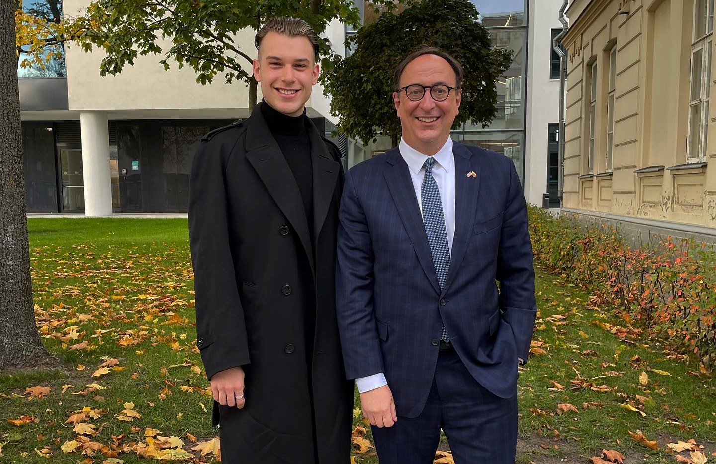 | LGBTQ+ teisių aktyvistas Rokas Garliauskas ir JAV ambasadorius Lietuvoje Robert Gilchrist | „Facebook" nuotr. |